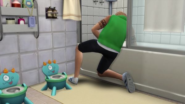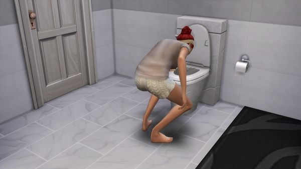 Als die Meute langsam wach wird, fühlt sich Kim nicht so wohl und misst erstmal Fieber. Aktuell geht ja die Grippe um. Man weiß ja nie. Doch als sie sich dann noch übergeben muss, macht sie vorsichtshalber einen Schwangerschaftstest und sie fällt fast vom Glauben ab, als dieser positiv ist. (Ich hatte mal eine Einstellung gemacht, dass das normale techtelmechteln eine Chance von 10% hat, trotzdem schwanger zu werden^^ - da das aber trotzdem eine spannende Sache ist, habe ich es runter auf 1% gestellt :D und "Baby machen" auf 50%, damit es vielleicht nicht immer auf Anhieb klappt, wenn Kinder wirklich geplant sind)