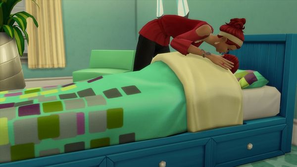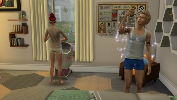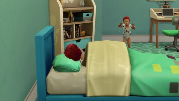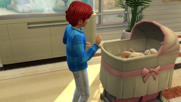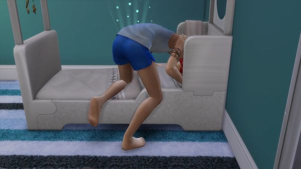 Sam kommt abends auch noch kurz vorbei, um das Baby zu begrüßen und nicht um nach Butter zu fragen :D Er hat heute Glück, dass Sonntag ist, sonst hätte ihm sein Vater wohl ein paar Simoleons in die Hand gedrückt und los geschickt ;)