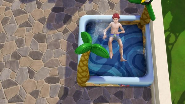 Er hier wiederum lässt es sich im Planschbecken gut gehen und überlegt, was er spannendes machen kann. Es ist öde, den ganzen Tag nur doof rumzuhängen. Sein Merkmal "Neugierig" verfolgt ihn bis ins Schulkindalter^^