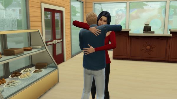 Japps, die Sims mögen diese Ecke wirklich. Elias freut sich sehr, dass Maurice da ist und er entschuldigt sich auch, dass er selten vorbeikommt. Am liebsten hätte er seine ganze Familie in einem Haus wohnen.