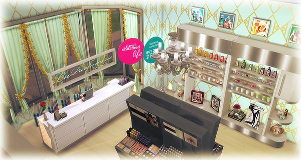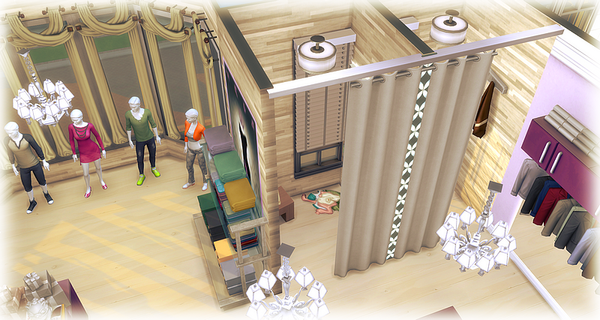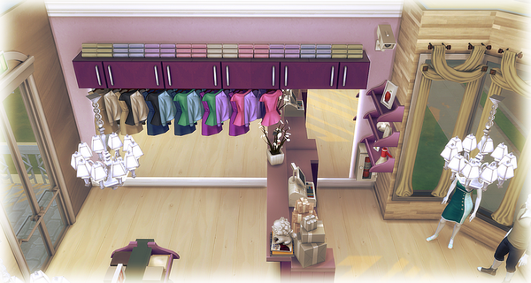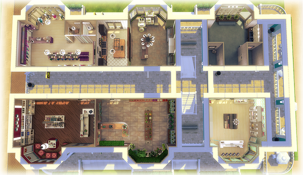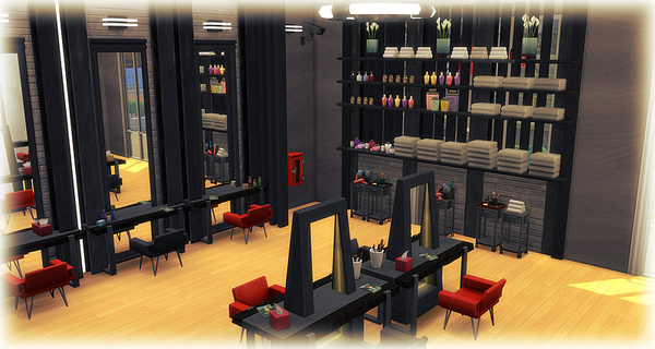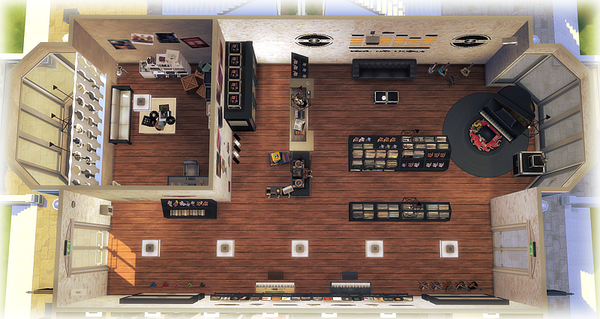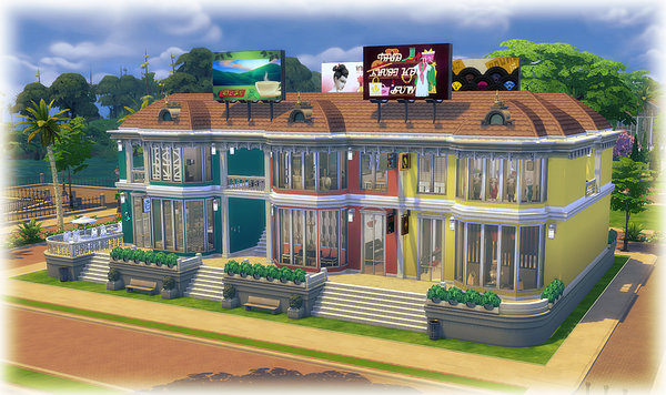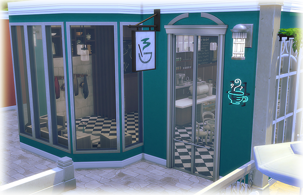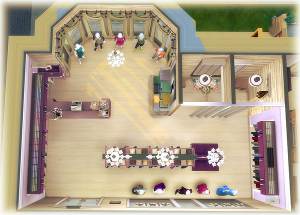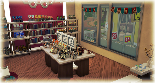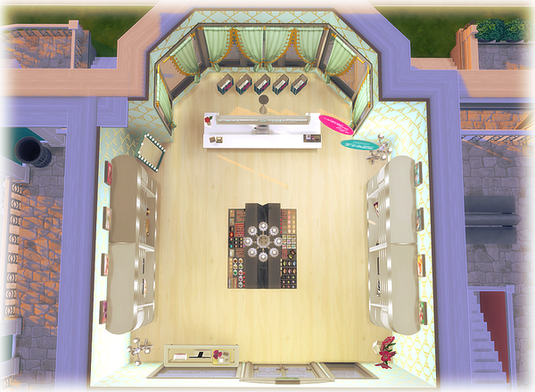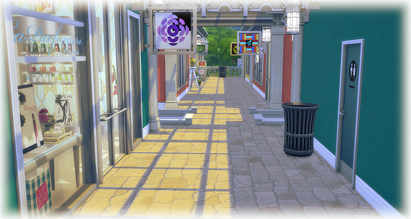 Dort befindet sich der Friseursalon in dem Kim arbeitet, der Plattenladen von Marcus, das Café in dem Lena jobbt, das Kosmetikgeschäft in dem Selina manche Kunden vergrauelt und Emmas kleine Bäckerei. Dazu gibt es noch einen Buchladen, ein Blumengeschäft und natürlich ein Shop mit der neusten Simmode. Der Plattenladen und das Kosmetikgeschäft enthalten CCs. Ich werde in der nächsten Zeit versuchen, diese Geschäfte auch als CCsfreie Version zu erstellen und dann das gesamte Grundstück in der Galerie hochladen. Die jetzige Version könnt ihr auf Anfrage bekommen.