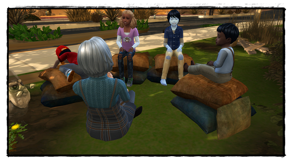 Der Text kann mit einem Sim des Haushalts geschrieben werden, oder mit der ganzen Familie zusammen.