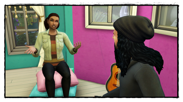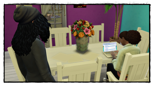 Der Text kann mit einem Sim des Haushalts geschrieben werden, oder mit der ganzen Familie zusammen.