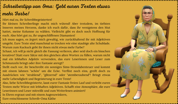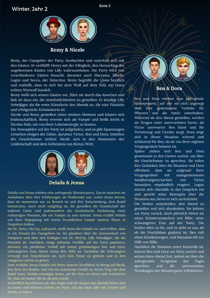 Der Text kann mit einem Sim des Haushalts geschrieben werden, oder mit der ganzen Familie zusammen.