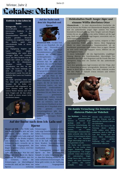 Das ist alles, worauf das RPG abzielt und worum es hier gehen soll. Versucht, zusammenzuarbeiten, um eine Geschichte zu schaffen und Handlungsstränge, an denen ihr gerne und mit Freude schreibt, aber auch mit Spannung und Vergnügen lest, was eure Mitschreiber verfassen. Fordert einander ruhig ein wenig, habt Mut zu Überraschungen und überlegt euch beim Schreiben, wie die anderen wohl auf euren Text antworten können und wie ihr es ihnen ermöglicht, gut an euren Post anzuknüpfen. Kurzum: arbeitet zusammen und habt Spaß!