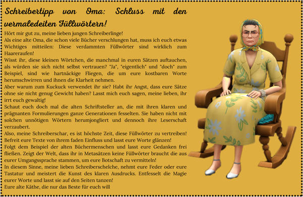 Fetter Text wird in erster Linie für direkte Reden genutzt. Jedes Wort, das den Mund eurer Figuren hörbar verlässt, wird fett geschrieben!