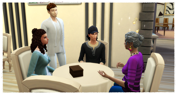 Der Text kann mit einem Sim des Haushalts geschrieben werden, oder mit der ganzen Familie zusammen.