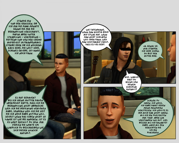 Der Text kann mit einem Sim des Haushalts geschrieben werden, oder mit der ganzen Familie zusammen.