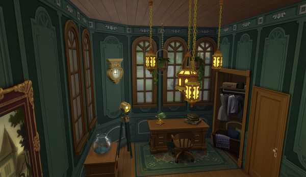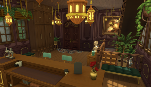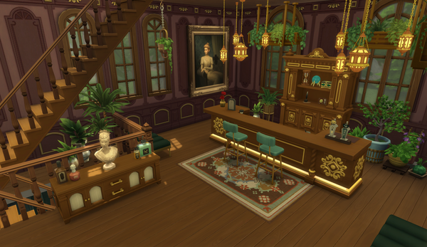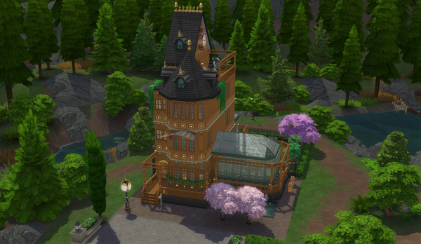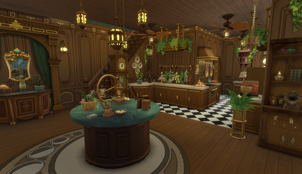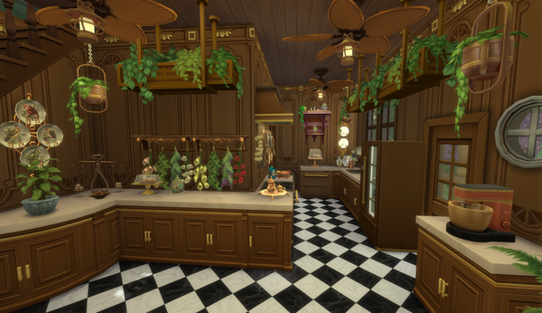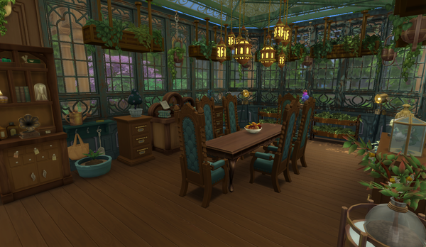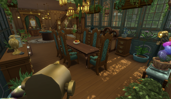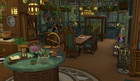 Adventure Awaits update to build, added a butterfly/moth habitat.It is great that you have made a Sims 4 version of your Sims 3 steampunk themed build. The exterior design is very great! ๐Very nice windows and great glasshouse area with glass roofing and glass walls. The interior furnishing of each area is beautiful! Very nice warm brown and green colours. The design, open plan layout and the furnishing of the kitchen,dining and sitting area is lovely! ๐Very nice wood wall paneling and great wood textured furniture. The glass windows walls and glass roofing in the dining nook is very nice and the plants and greenery through the room areas are lovely. The study desk and bar counter rooms are very nice and lovely design of the bedrooms.