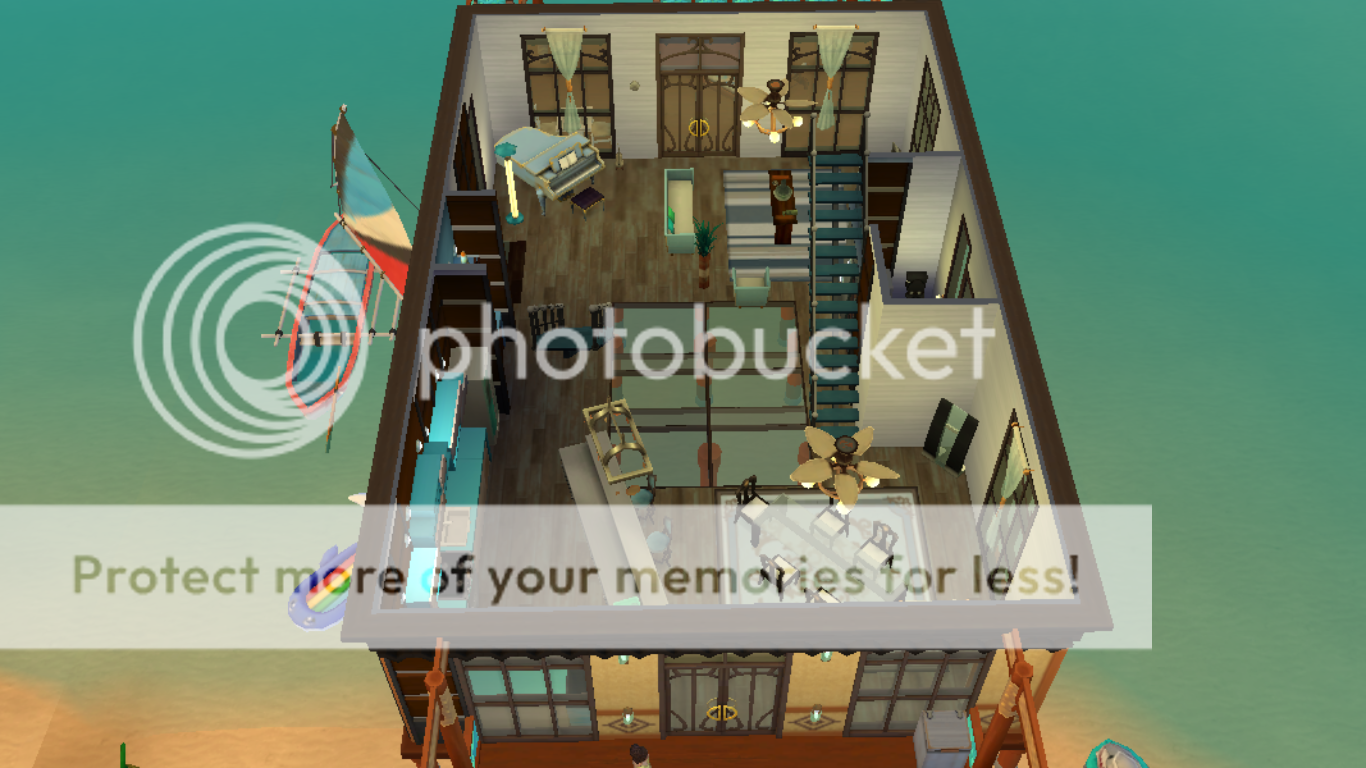 Now these were challenges but after some trial and error all went well. The was some cool things I found (remember about a year of no play for me) The ceiling fans are so cool. They actually spin and I had a blast playing with the lights and adding them to the fans. I also had a blast combing rugs to my my own "custom" rugs. I did not know we had clear/glass floor tile. Very cool. I love how you can start build the house while in the water. the coolest part the stairs can be placed in the water at "wade" level and the sims can actually use them.