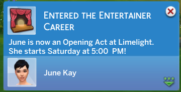 I started out Legacy style on a 50x50 lot with $0. I'm playing completely Base Game right now. I want to complete as many skills, aspirations, and careers as I can until moving on to the next generation and adding a new pack. I'm using very minimal mods and a little bit of CC. When I found some CC based off June's band, Woowho, with Andre, Babs, and Ollie I couldn't resist. You'll see some of the band posters throughout her house.