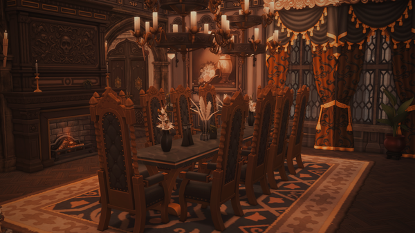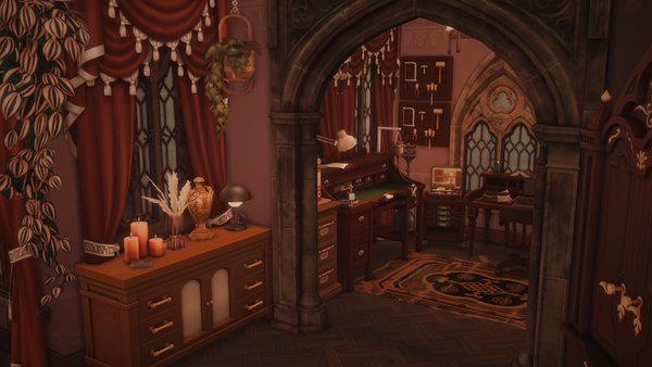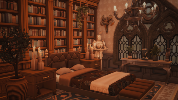 6 bedrooms, 3 bathrooms, 2 story library, wine cellar, office and hobby room Pixie Hollow is a lovely fairy home! 🙂Very pretty exterior design and tower. The orange greenery on the walls and the toadstools are very nice. The interior furnishing is lovely! Very nice brown and white colours. The warm wood texture of the furniture is very nice. The flowers along the dining table are pretty. Very nice canopy bed and pretty curtains in the bedroom.