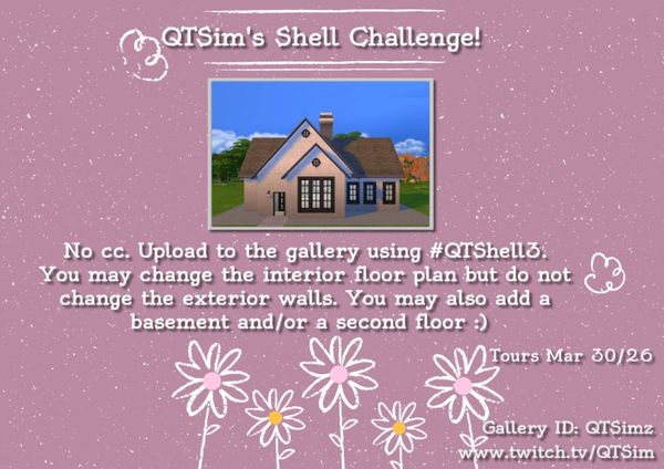 As with all of my shell challenges, you may add additional floors, change the interior floor plan if I've added one, change the roof, windows, etc. Only thing I ask is that you do not change the exterior walls and no cc please.
