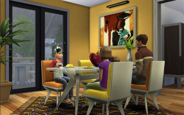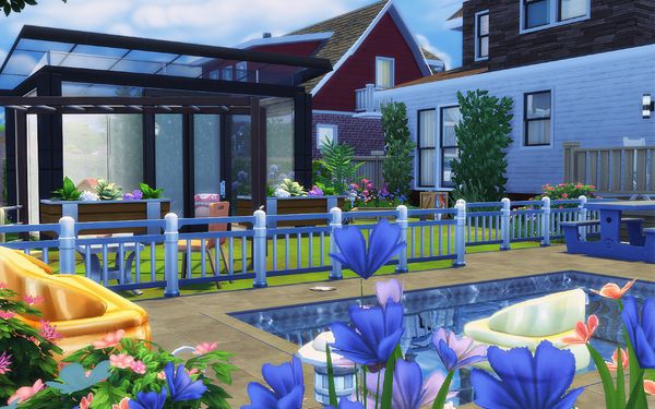 Family Base Game 5 is a lovely family home! 🙂Very nice exterior design and brown and white walls. The fenced pool patio is great and very nice kids play glasshouse. The interior furnishing is lovely! The bedrooms designs and colours are very nice. The kids rooms are sweet ❤️Very nice dining area and the warm yellow and orange colours are very nice.