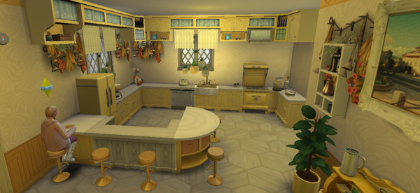 Here are photos of Tyrone & Ann Pleasant's home in Britechester. I kept the original Pleasant home build but remodeled each floor to make it more family friendly and put the staircases in an out-of-the way corner to get more usable space, especially on the main floor. Put a basement in for future use with space for family/rec room and future bedroom and bath. Am sharing the room photos here and plan to use 'overview' type photos to get the layout of each floor.