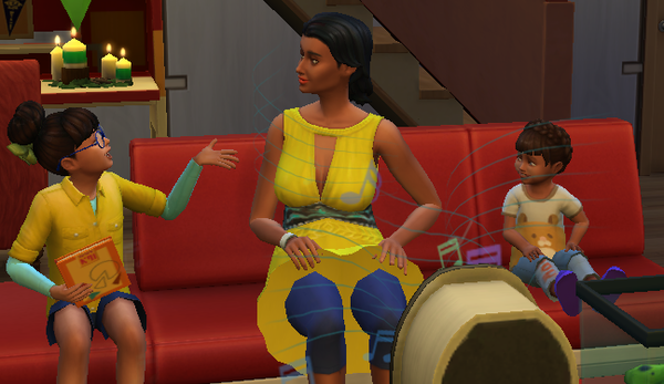 Amelia is sitting between her daughters as they share stories and jokes with each other. Although she is a busy Stay-at-Home-Mom, Amelia hopes to get back to working on her dream of becoming a 'Musical Genius' soon.