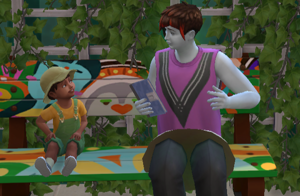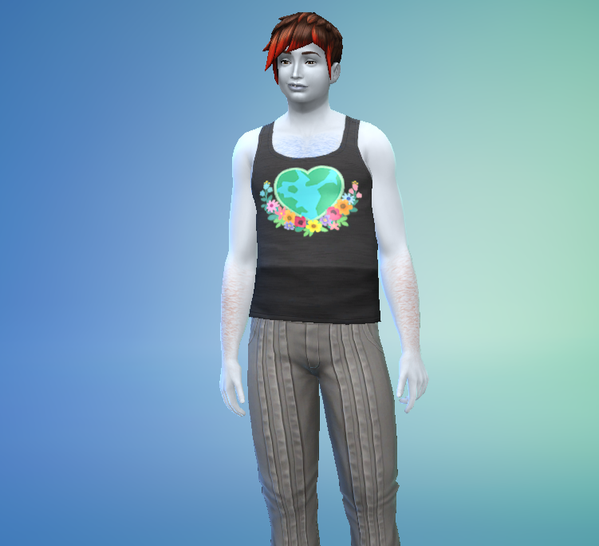 This is Yahir in his human form. Yahir has the bluish alien skin. As a teenager, he has added 'Recycle Disciple' to his 'goofball' personality and wants to be an Admired Icon during his teen years.