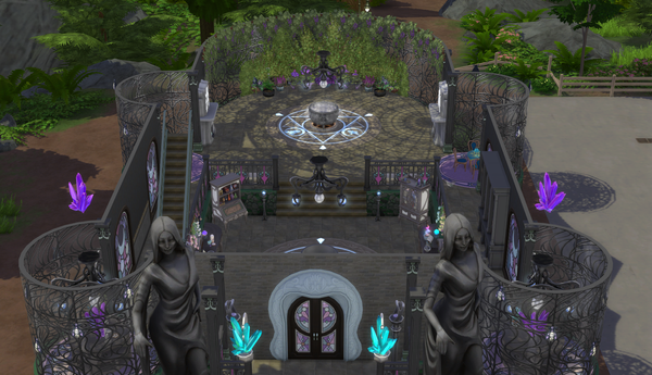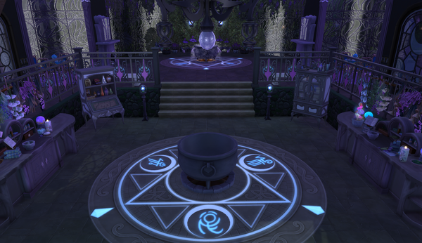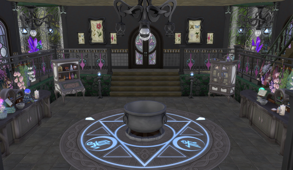 Your Apothecary and potions custom venue is great! 🙂The exterior design, glass domes roofing and towers are lovely! Very nice stained glass windows and doors. The furnishing of each of the cauldron areas and levels is creatively great and very nice layout.
