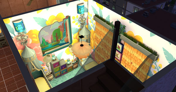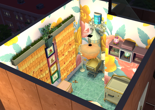Hope you all had a great day. Since I got notice in yesterday's game play that the Nadir household is expecting their first child, I decided to go into their penthouse via build mode to make sure they had a nursery. My project is quickly progressing to a partial reno, though as I'm now planning to redecorate the 2nd floor hallway, turn the office into another bedroom and add two more bedrooms and a bath on the top level just in case their family expands by more than one. In my main game save, they took awhile to start a family but once Aziz & Valentina started having children, their household almost filled up. I hope to use mostly rooms from my gallery but I created a whole new nursery for them. Here are the pictures.