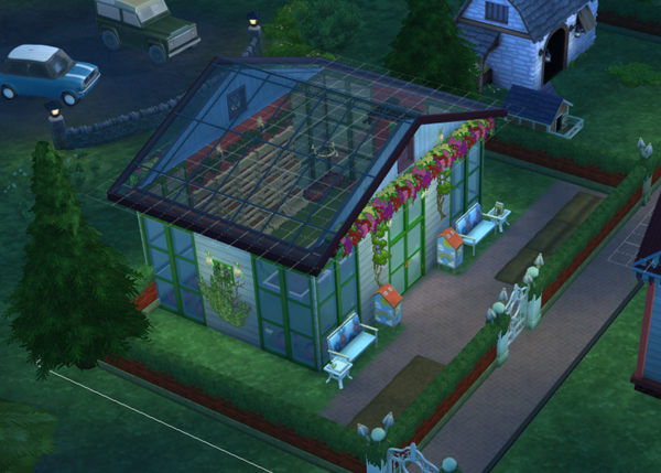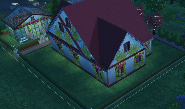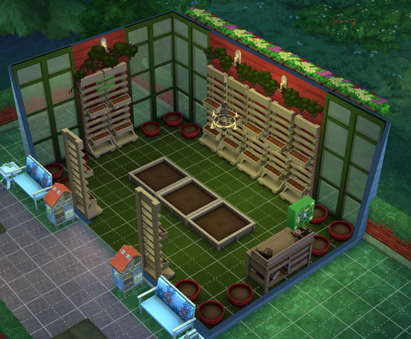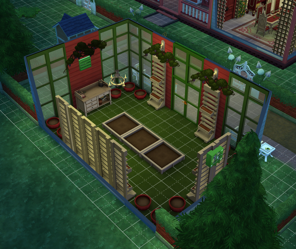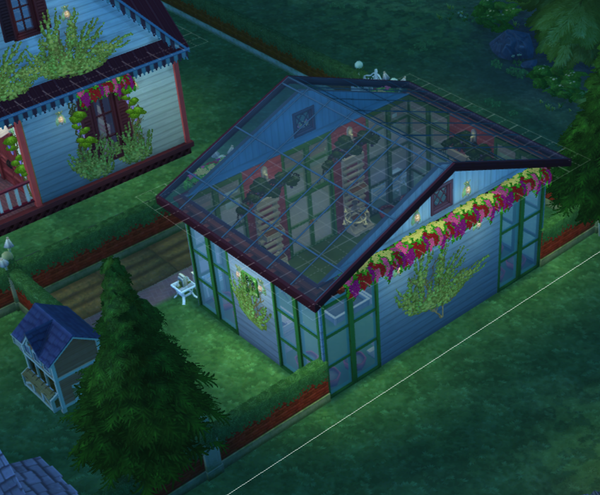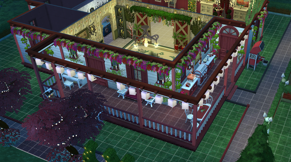 Just stopping by with pictures of the bedroom hallway in Clyde's house that I decorated last night along with the outdoor areas that I just finished including an enclosure for the animal shed and chicken coop along with a greenhouse/garden area. The wrap around porch has also been furnished and decorated.