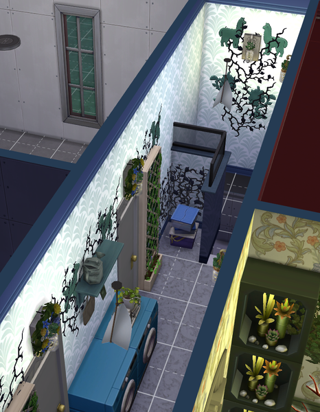 Small laundry area. Since the washer & dryer are considered basic decor that would affect a Sim's dislike for the basics, Clyde is going to have a little change of heart and become neutral to that category since he would much prefer to have clean clothes to wear.