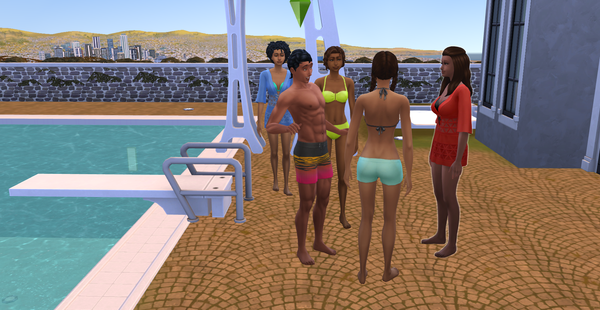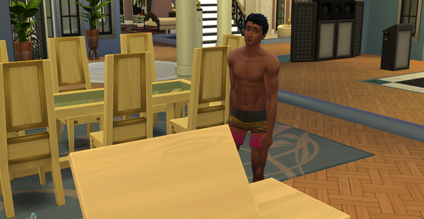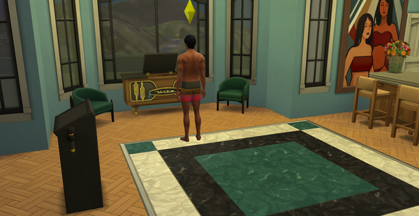 I started a romantic elimination competition for one of my sims. He just became a young adult and is looking for that special someone to spend the rest of his life with. It is bachelor style, where he is the bachelor and 8 single women are vying for his attention. I decided not to do it at Gibbi Point. It is at a lot from the gallery that I placed in Del Sol Valley in the hills. This is the bachelor, Theodore Ito Scott at the getaway enjoying a moment alone.