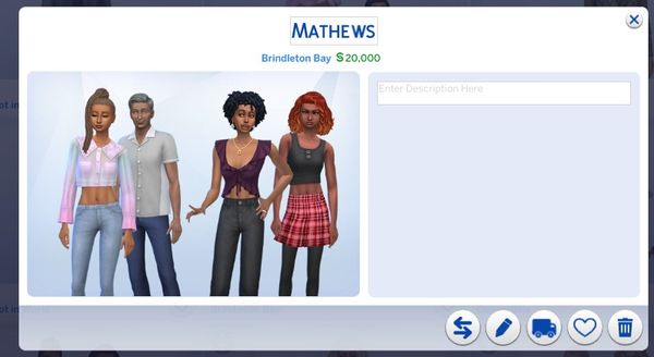 And finally, Laura L’Amour does not have a known job and her known traits are Bro and Foodie. She lives with her two dogs in a nice home in Newcrest. She has good compatibility with Theodore.