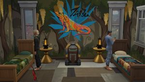 The makeover of their bedroom is lovely 🙂The grapes do look like 3d! The lizard wall mural is great. The room design and layout are very nice. It is great that there are double study desks for them to do work on or read at,as well as a desk to enjoy using the computer. The fireplace is nice to keep the room warm.