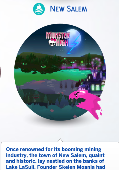 The world map, contains it's own Icons, descriptions. I still need to place the sims in the world, I've got about 40-50 free slots, in the world to place the monster high sims, I used mainly Rental units like dorms, to increase this count.