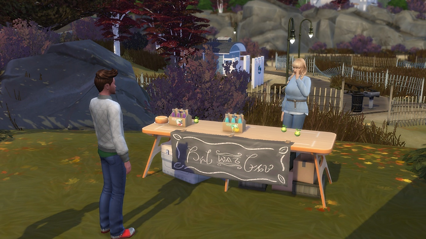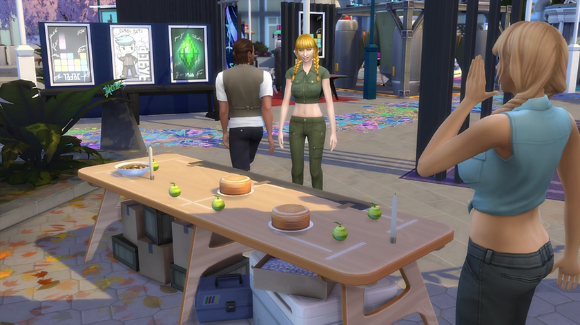Mardi, j’ai même tenté de m’installer à la Convention Geek de San Myshuno. Stéphanie et Yvon sont venus m’encourager mais je n’ai pas fait énormément de ventes. Ce n’était pas le bon endroit, je pense, même si un sim s’est quand même empressé de partir avec mon ragoût de la récolte du jour. Ce sera ça de moins dans ma poche mais tant pis, peut-être qu’il aura apprécié ma popotte malgré tout.