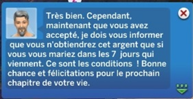 Un sim que je ne connaissais pas venait apparemment de décéder en me léguant toute sa fortune, et il était question de savoir si j’acceptais ou non l’héritage. J’ai dit oui, bien sûr ! Ce mercredi est vraiment mon jour de chance !