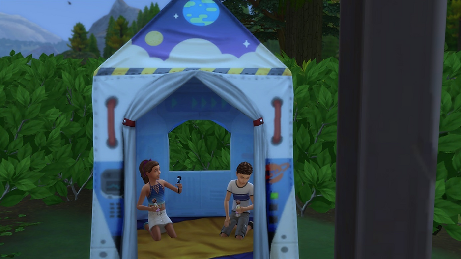 Les enfants s’empressèrent d’investir la petite tente qui se trouvait pour y jouer à l’abri du soleil...