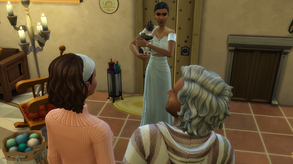 Mais quelle ne fut pas notre surprise, en voyant Cyrielle franchir le seuil de la porte, dans sa jolie robe, avec un chat dans les bras.