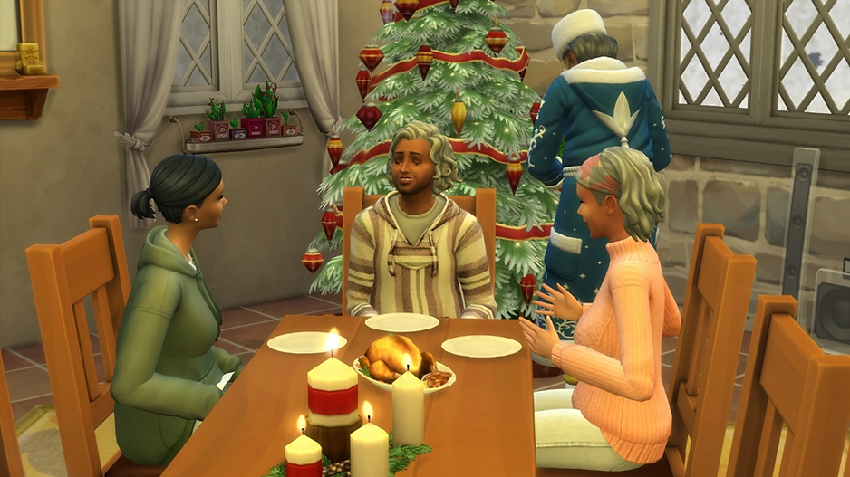 Nous avions tout juste fini la dinde lorsque le Père Hiver fit son apparition dans la pièce. Nous le saluâmes, et lui souhaitâmes un joyeux Noël, avant qu’il ne s’éclipse rapidement. Il faisait tellement mauvais, qu’il avait hâte de finir sa tournée pour rentrer dans sa chaumière.
