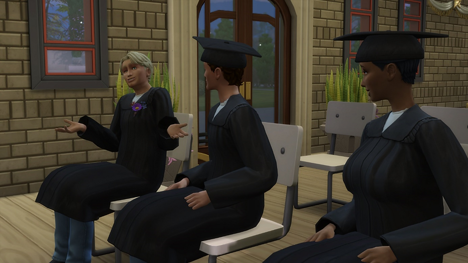 Jérôme n’avait pas de toque, et portait des fleurs sur sa robe de diplômé... J’étais très intriguée, mais Alain lui demanda pourquoi, il était affublé ainsi.