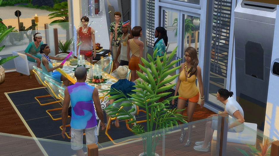 En début d’après-midi, Keanu partit chercher le reste des invités à l’aéroport, puis nous nous rejoignîmes tous sur le pont supérieur, là pour fêter les anniversaires de Tonton Mathurin, et de Maman. Mon oncle inaugura les festivités.