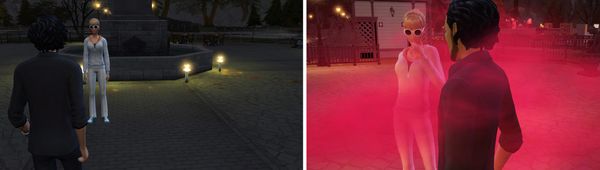 Alors qu’il est à présent seul dans le parc, il voit cette jeune femme blonde, ce n’est pas la première fois qu’il la voit. Il l’a déjà entraperçue plusieurs fois, à croire qu’elle aime bien se perdre dans le hameau. Il la sait plutôt jolie même s’il elle n'est pas à son avantage avec ses grandes lunettes noires. Alors qu’il s'approche d’elle et cherche le meilleur moyen de l’aborder, un phénomène étrange se produit. Il sent une aura se répandre tout autour de lui. La jeune femme le regarde soudainement, lui sourit et engage la conversation.