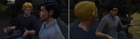 C'est ainsi que plusieurs jours plus tard Caleb et Lilith quittent le hameau pour une durée indéterminée. Ce soir-là, juste après leur départ, Clovis et Eivor s'attardent sur leur banc.