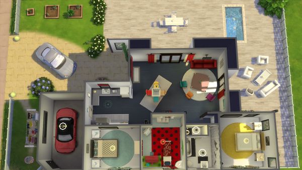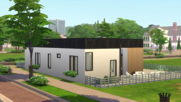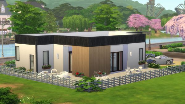 C’est une petite maison de plain-pied avec trois chambres, une cuisine ouverte sur le séjour, une salle de bain, des toilettes indépendants, un garage, et une grande terrasse.