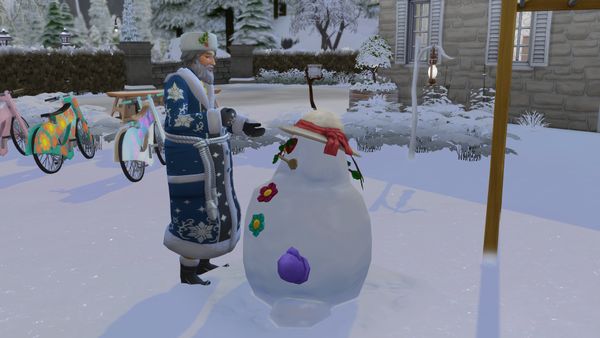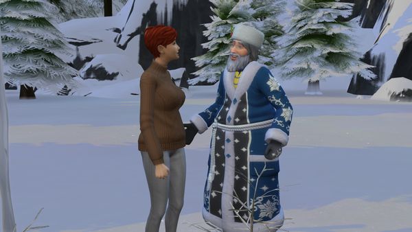 Le lendemain matin, je m’étais levée de bonne heure pour nourrir notre lama, et j’en profitais pour ramasser les perce-neige qui étaient sortis de terre cette nuit. Le Père Hiver se tenait derrière moi.