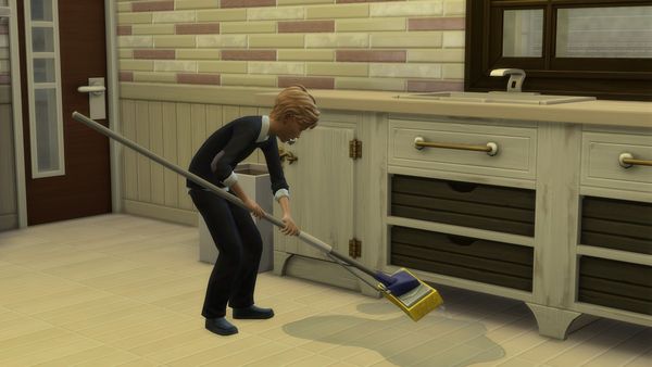 Philippe avait ensuite pris la serpillère pour nettoyer les dégâts.