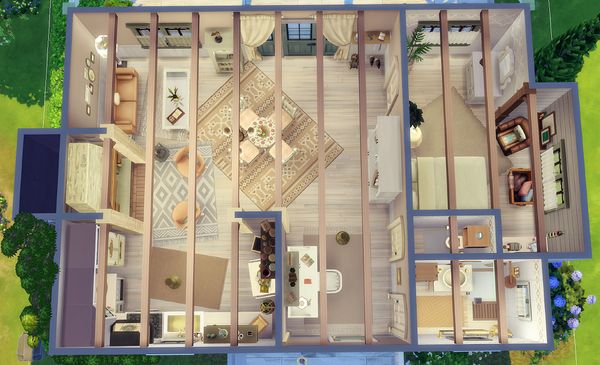 Une nouvelle maison familiale réalisée uniquement à partir du jeu de base a pris place dans mon catalogue. Il s'agit de Family BaseGame 6 ; elle offre, sur deux niveaux, une pièce de vie, 1 chambre parentale, et une salle de bains au rez-de-chaussée, une salle familiale deux chambres et une salle d'eau au sous-sol.