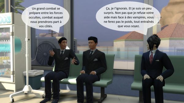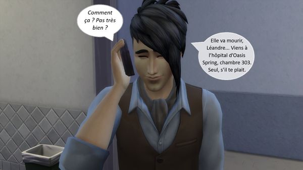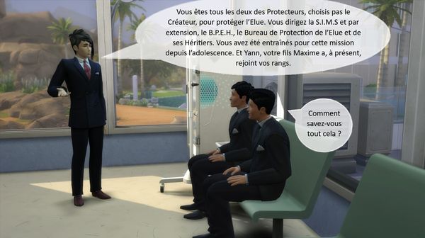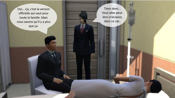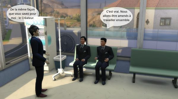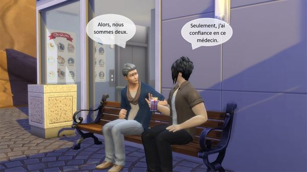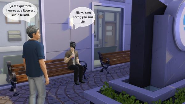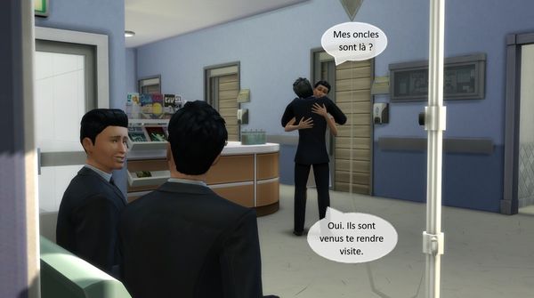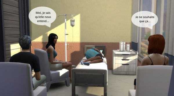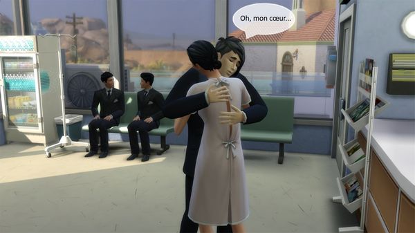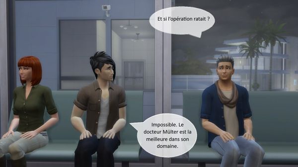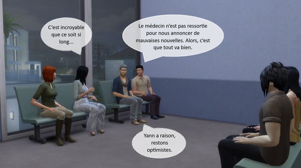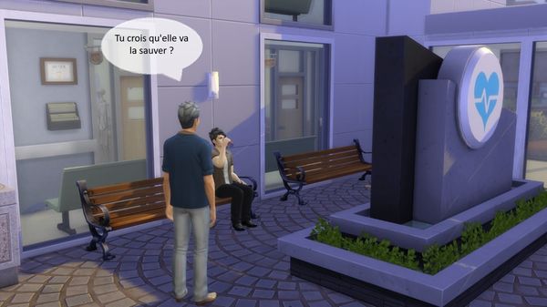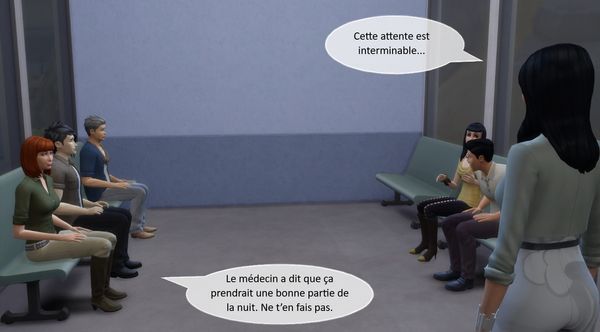 Les docteurs Salvador Porter et Shelby Multer, ainsi que les deux réceptionnistes/infirmiers (appelés Fairbrooks pour l'homme, et Dominique Goodman pour la femme) sont des sims de Ivelle_Creates L'hôpital d'Oasis Spring est une création de Thdusssyy. Je l'ai un peu modifiée pour les besoins de l'histoire mais vraiment très peu.