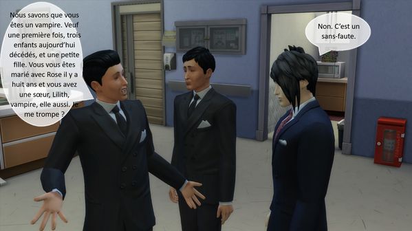 - Oui, j’ai ma petite idée pour la sauver, pas très orthodoxe mais ça peut marcher. - Dieu soit Loué ! - Je ne vais pas y aller par quatre chemins. Je sais que vous êtes un vampire et vous savez que j’en suis un. Si vous voulez sauver votre femme, il va falloir que vous répondiez honnêtement à mes questions. - Je répondrai à toutes les questions que vous voulez.