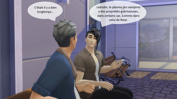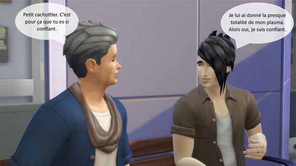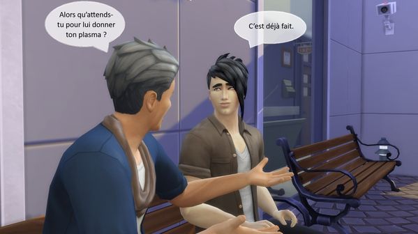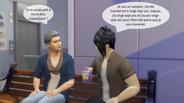 - C’est parfait, on est bon ! Je vous explique. Je devais m’assurer que vous ne vous étiez pas nourri sur elle ces derniers jours car je vais vous prendre du plasma, à vous, pour la transfuser. Comme cela fait quatre mois, il n’y a aucun risque de la transformer en vampire. - Mon plasma peut la soigner ?