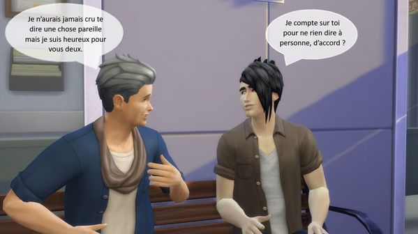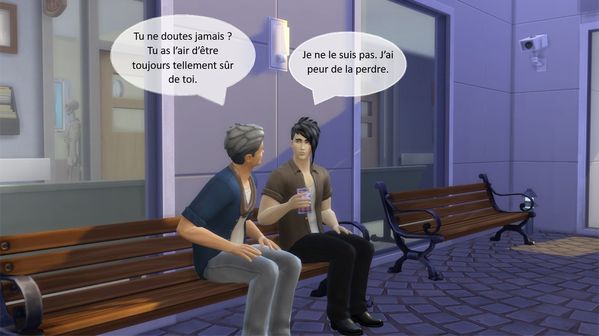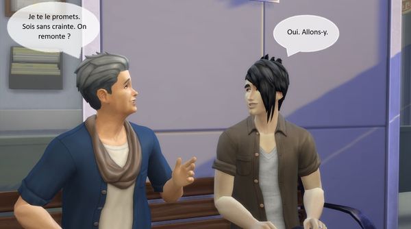 Il fallait que je m’éclipse... Il était temps pour moi de remonter dans la chambre. - Merci d’être resté un peu avec moi. Cela m’a fait du bien de discuter. J’en avais besoin. - A ton service.