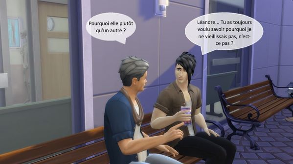 - Mais tu es complètement cinglée ! Tu sais bien ce que nous coûte la vie éternelle ! - Oui, je le sais. Et je sais aussi que tu l’avais refusée à Samuel quand il te l’a demandé. - Justement. Alors tu oublies ça. - Si tu avais accepté, Samuel serait encore avec toi, à l’heure qu’il est.