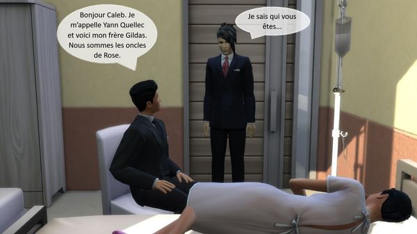 - Mais qu’est-ce que je vais leur dire ? Ça fait des années que nous ne nous sommes vus... - Tu as déjà vu tes deux oncles, Yann et Gildas, lorsque tu t’es levée entre deux comas. Tu ne te rappelles pas ? - Non... Je ne me souviens même pas m’être réveillée... - Eh bien, ça s’était très bien passé.