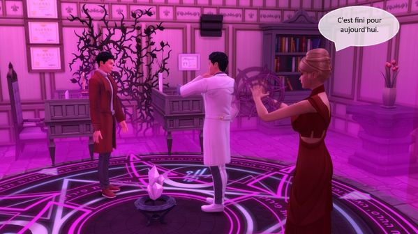 Leurs sourires se figèrent lorsqu’une lumière rose et quelques écritures apparurent autour du cristal.