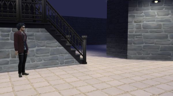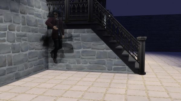 Il s’était alors tapi derrière un escalier, revêtant sa forme sombre, et l’attendant de pied ferme.